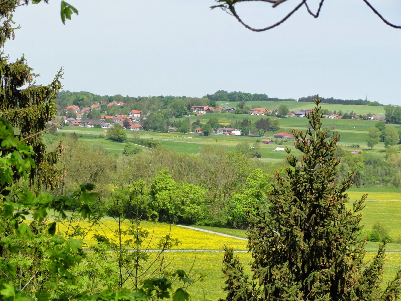 Logo na saída de Augsburg passa por dentro de um bosque e depois segue por campos, onde está plantado trigo, alguns lugares já soltado cachos, ou vegetação para o gado confinado.